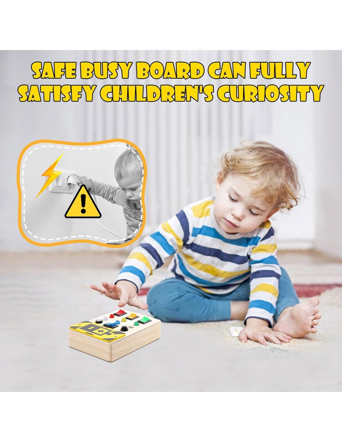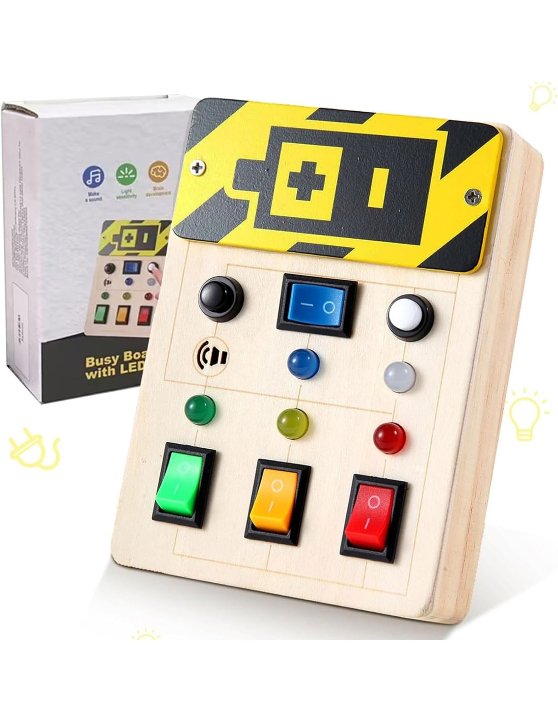 El Busy Board Montessori con Interruptores y Luces LED es un tablero sensorial de madera que permite a los niños explorar botones, interruptores y luces reales. Cada acción activa una respuesta una luz que se enciende o un sonido ayudando a comprender la relación causa–efecto mientras desarrollan motricidad fina, atención y curiosidad.