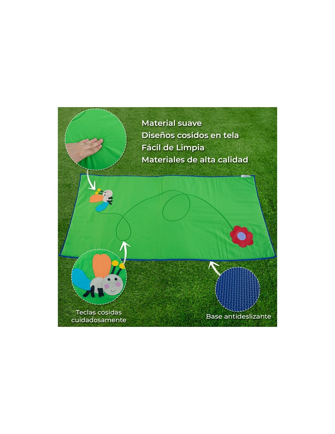 El compañero de juego perfecto para tus pequeños aventureros: nuestro tapete de tela con base antideslizante y diseños cosidos. Brinda un mundo de diversión segura con colores vibrantes y espacio para la imaginación en expansión. Resistente, fácil de limpiar y diseñado para horas de juego creativo y aprendizaje interactivo.