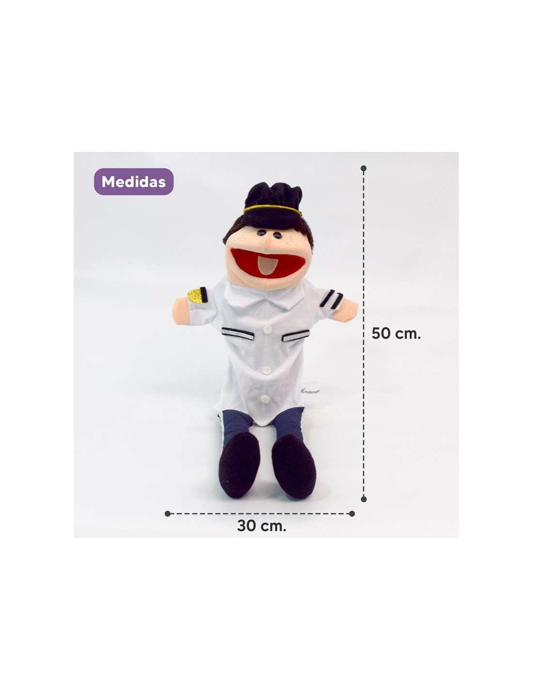 Los títeres sirven para desarrollar el lenguaje en los niños y niñas. Ayudan a los niños y niñas a desarrollar un pensamiento creativo. Se emplean perfectamente en la presentación de actividades y dramatización de cuentos. Permiten a los infantes representar pequeños papeles. Los títeres se caracterizan porque su movimiento depende de la mano del titiritero (la persona que lo acciona). Ideal para las habilidades motoras, la coordinación mano-ojo, las habilidades de comunicación, la auto-confianza y el vínculo emocional padre-hijo. El movimiento completo de la boca le confieren a este títere una personalidad característica. Acceso por la parte inferior de la espalda.
