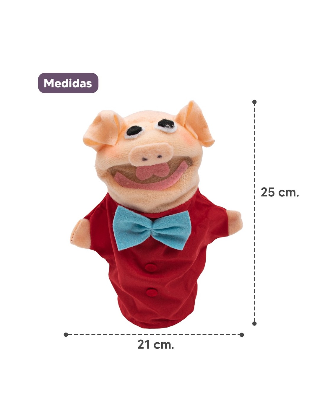 Ideal para las habilidades motoras, la coordinación mano-ojo, las habilidades de comunicación, la auto-confianza y el vínculo emocional padre-hijo. El movimiento completo de la boca le confieren a este títere una personalidad característica.