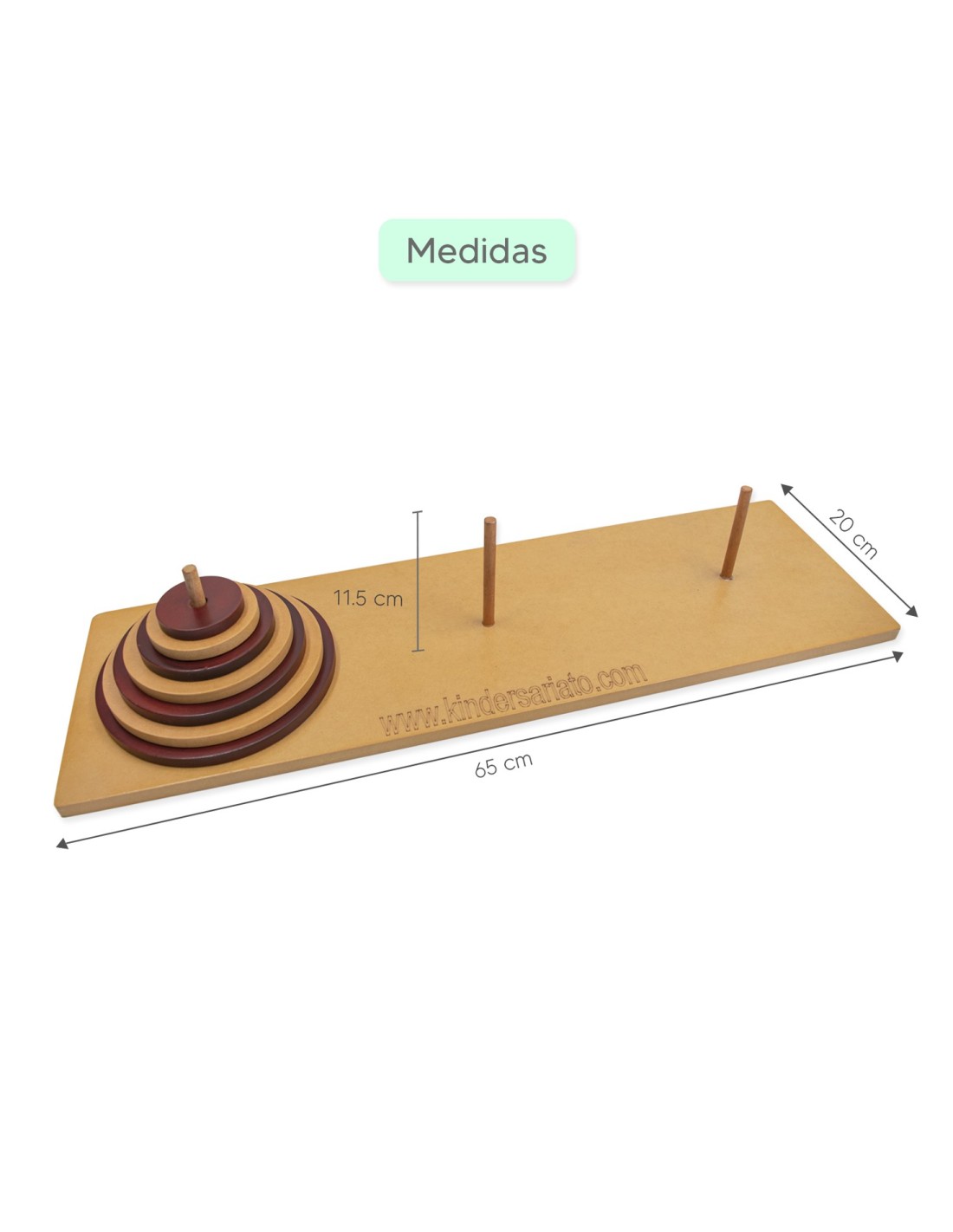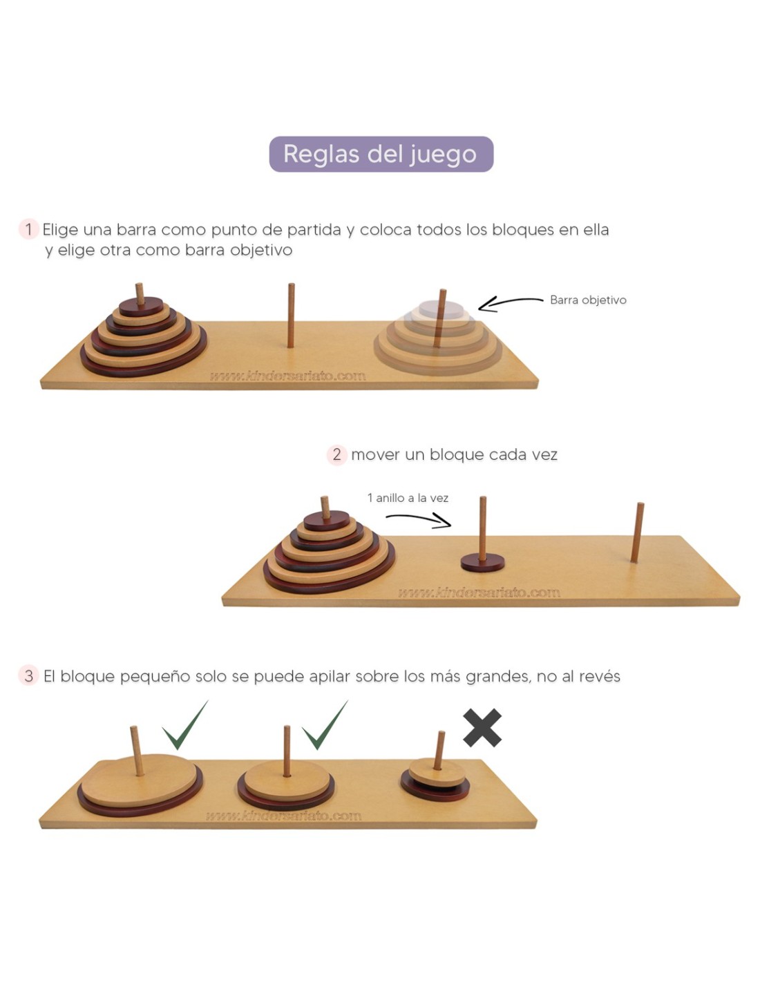 El objetivo del juego es trasladar toda la pila de discos a otro de los postes o varillas, siguiendo las simples reglas de un rompecabezas clásico: hay que crear la torre creciente de siete discos en otra de las dos varillas del tablero, con una única condición: nunca poner una pieza más grande que la anterior.